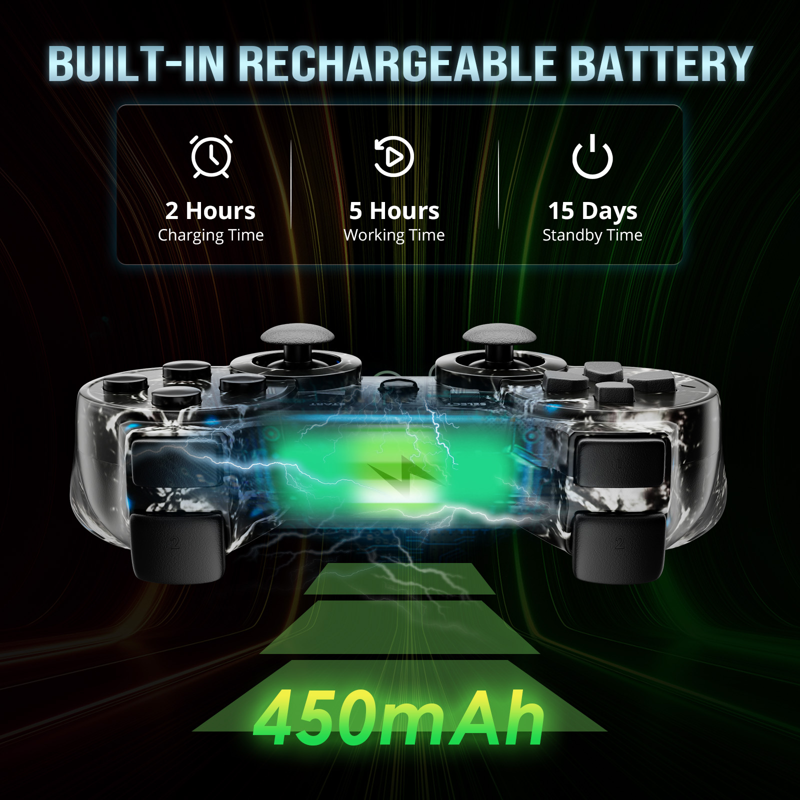 The ISHAKO Wireless Controller is designed for smooth compatibility with PS3, PS3 Slim, and Windows PC/laptop systems. For the first-time connection to a PS3 console, simply use the included USB cable to complete the pairing process. Built with a 450mAh rechargeable battery, the controller can automatically enter sleep mode after five minutes of inactivity, effectively saving power and extending usage time. It features dual vibration motors and a six-axis motion control sensor to deliver a more immersive and responsive gaming experience. The ergonomic design includes finger indentations on the back, offering a comfortable and secure grip during long gaming sessions. The 360° joystick is highly sensitive and precise, ensuring smooth, drift-free operation. Whether gaming at home or on the go, the ISHAKO controller provides reliable performance with comfort and precision.