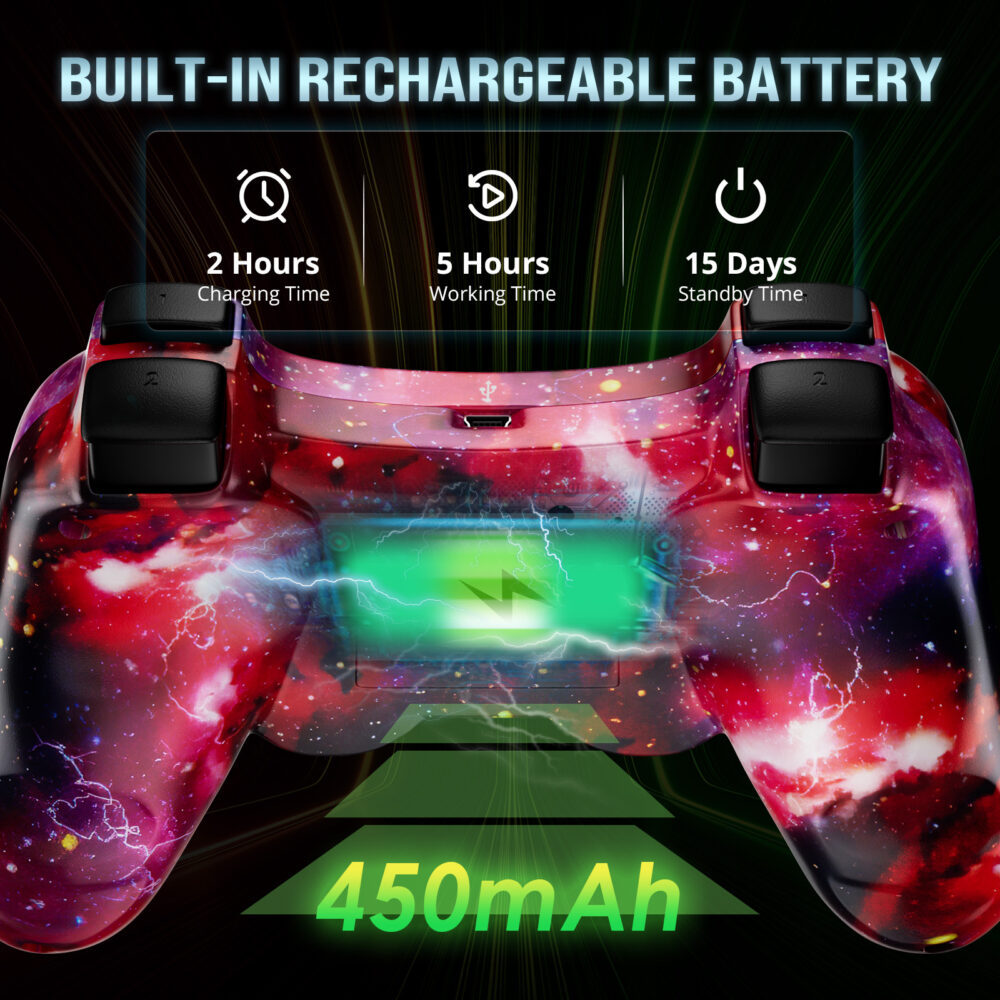 The ISHAKO Wireless Controller is designed for smooth compatibility with PS3, PS3 Slim, and Windows PC/laptop systems. For the first-time connection to a PS3 console, simply use the included USB cable to complete the pairing process. Built with a 450mAh rechargeable battery, the controller can automatically enter sleep mode after five minutes of inactivity, effectively saving power and extending usage time. It features dual vibration motors and a six-axis motion control sensor to deliver a more immersive and responsive gaming experience. The ergonomic design includes finger indentations on the back, offering a comfortable and secure grip during long gaming sessions. The 360° joystick is highly sensitive and precise, ensuring smooth, drift-free operation. Whether gaming at home or on the go, the ISHAKO controller provides reliable performance with comfort and precision.